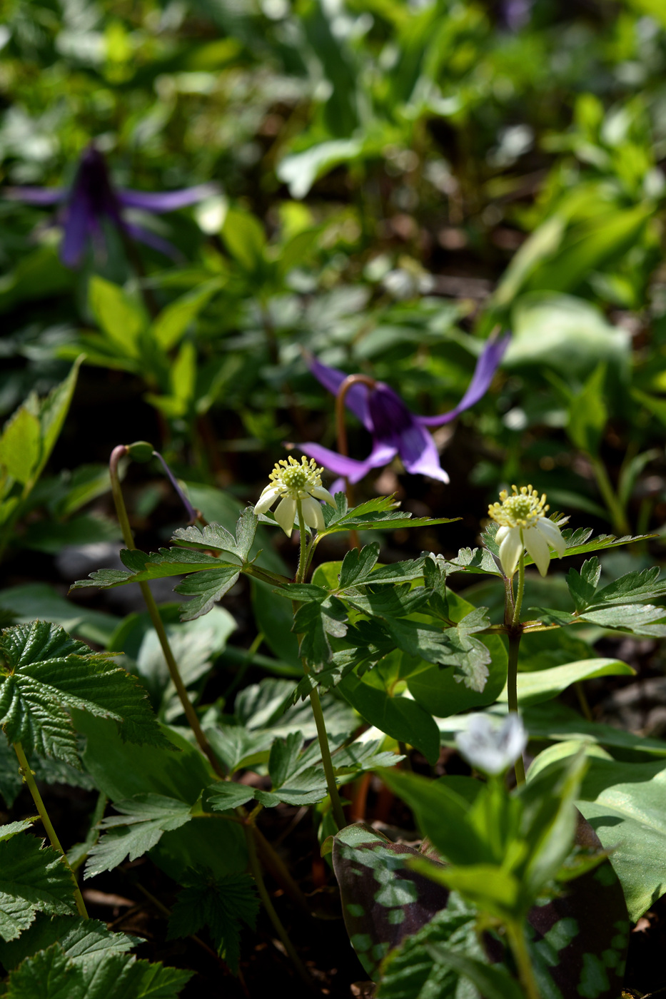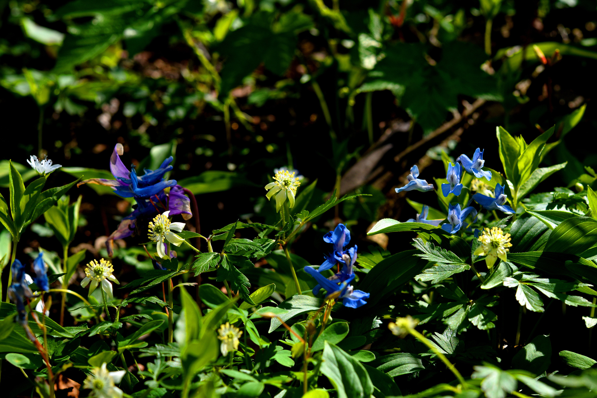 능선에 올라서니 좌우로 천상의 대화원이 펼처진다. 홀아비바람꽃, 태백바람꽃, 현호색, 얼레지들이 박새와 속새의 보호아래 장관을 이루고 있다.